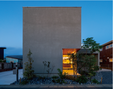 寄居町の穏やかな景色と調和する外観デザインで、自然と調和した住まい