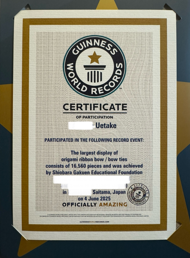 今回、息子が参加したのは、「折り紙で作ったリボン/蝶ネクタイの最多展示数」という記録イベントでした!