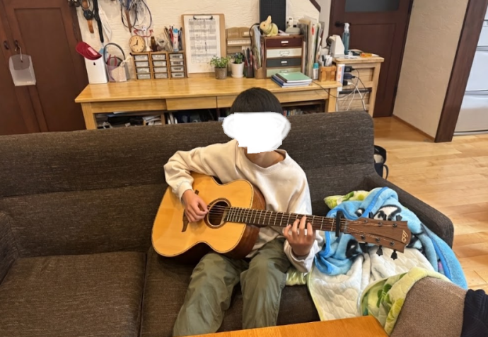 練習をしていて、最近、アコースティックギターがほしいと言い出し、